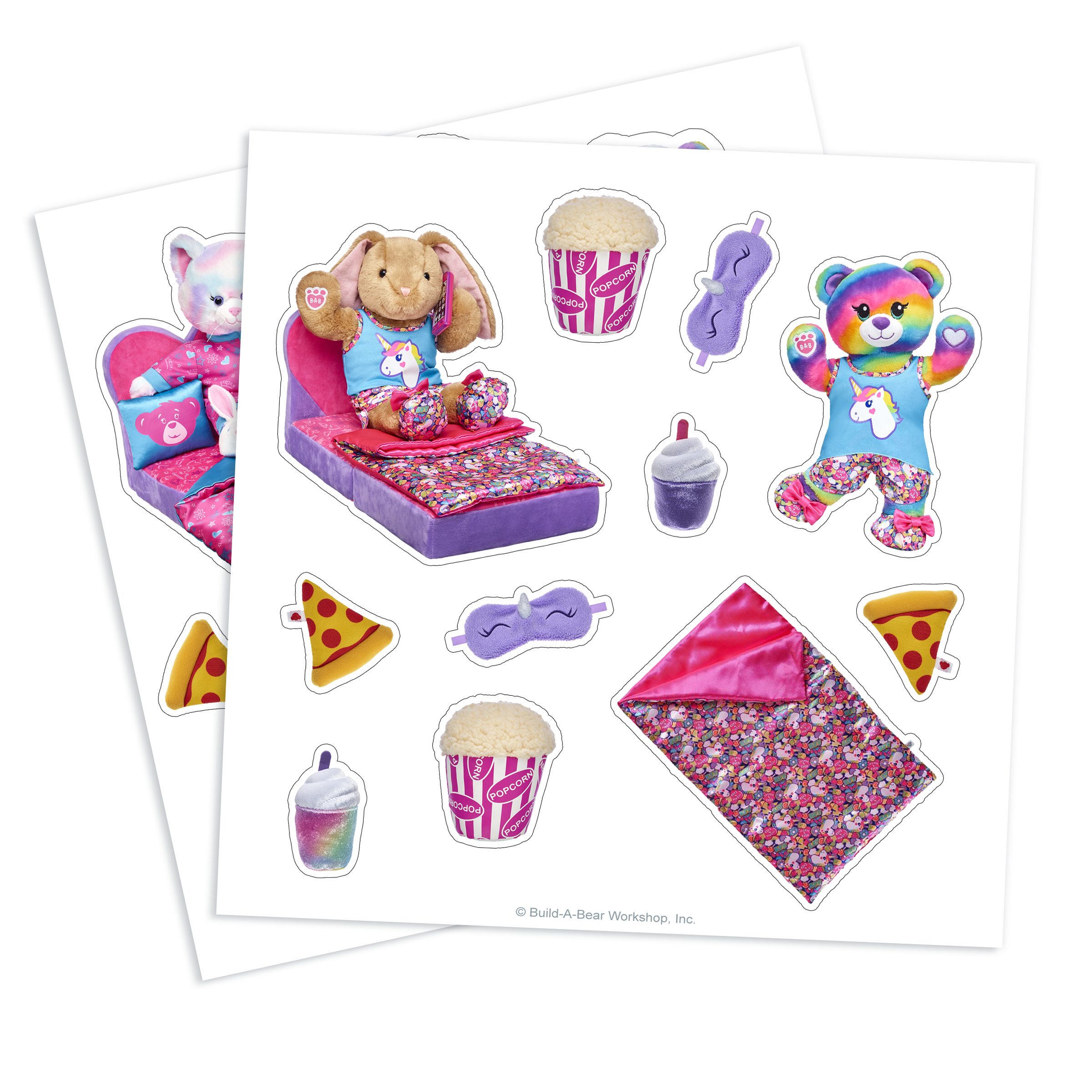 - This set contains 7 three-inch square tiles, 1 equilateral triangle tile and 2 sheets of reusable Build-A-Bear® clings.
