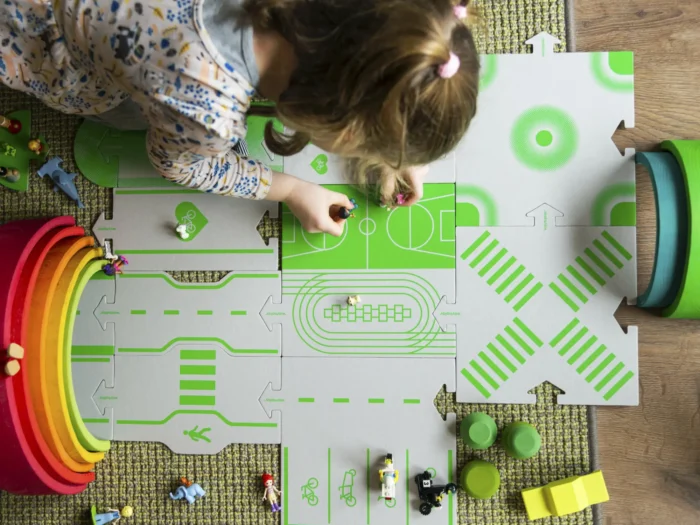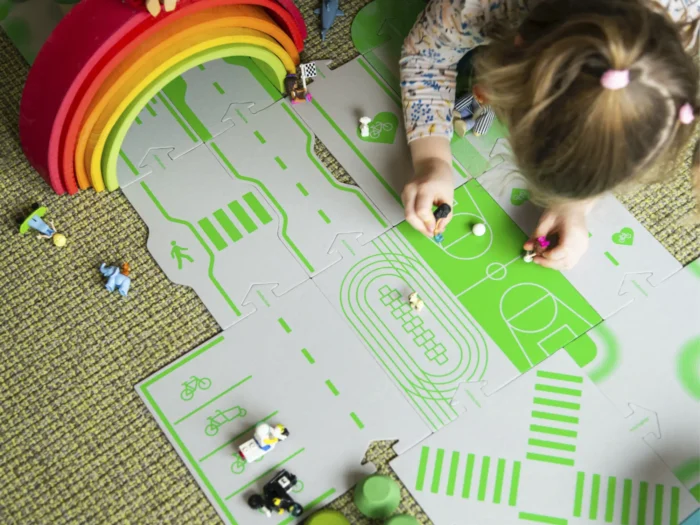 Made from recycled cardboard and designed for indoor use, Downtown is fully compatible with our flexible toy roads. Imagine, create, play!