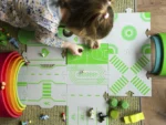 The recycled cardboard downtown is specially designed for indoor use and they offer an extra benefit: kids can write or doodle on the back.