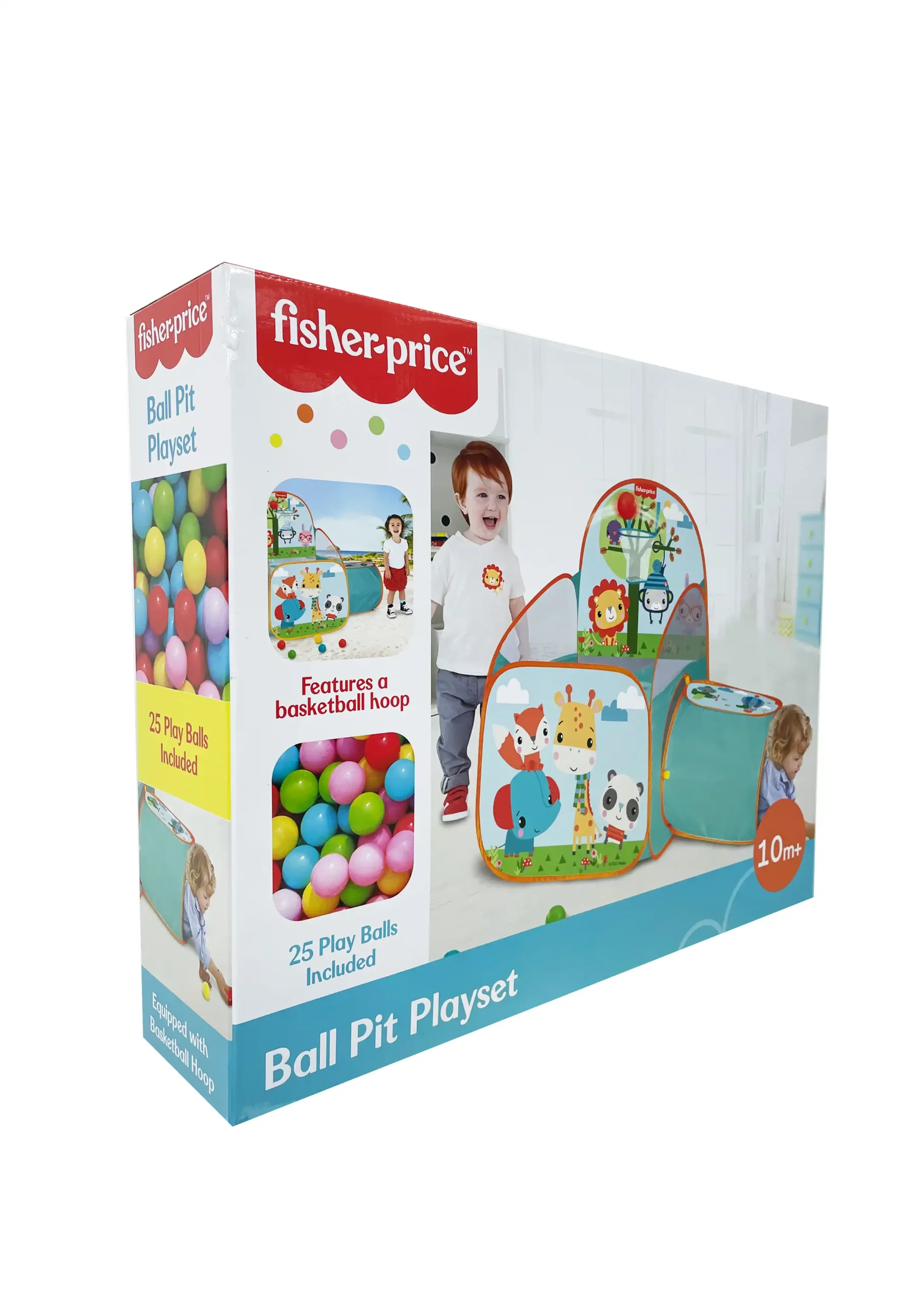Ball Pit Playset W/Tunnel 25 Balls from Fisher‑Price. Includes 25 soft play balls, Soft, breathable rim; machine washable Suitable for 10M+.