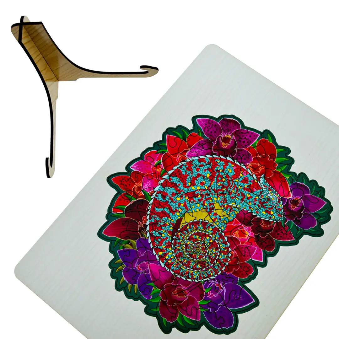 The Fofa Puzzle Colourful in a Frame â Chameleon is a bright and engaging wooden puzzle designed to inspire learning through play. Featuring a beautifully crafted, multicoloured chameleon, this puzzle helps children develop fine motor skills, hand-eye coordination, and problem-solving abilities while having fun. Each piece is made from smooth, durable, child-safe wood, perfectly sized for little hands. With its vibrant colours and sturdy frame, itâs both an educational toy and a charming addition to any playroom â ideal for toddlers and preschoolers who love colourful animals and creative play.