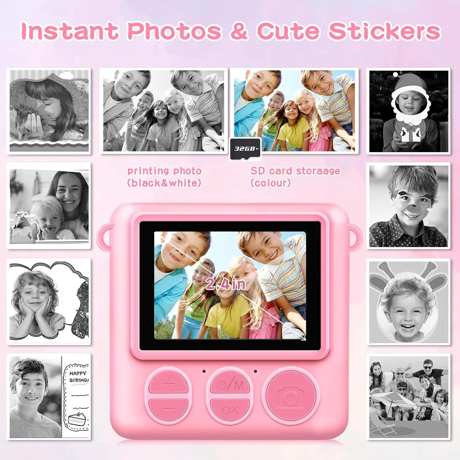 Kids Camera Instant Print, 48MP Digital Camera with Zero Ink, Selfie 1080P Video Camera with 32G TF Card, Toys Gifts for Girls Boys Aged 3-12 for Christmas/Birthday/Holiday