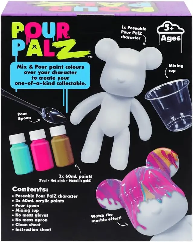 Create stunning marble designs with vibrant paints Customise a plain white bear into a unique masterpiece Doubles as decor or a personalised gift! Fun and easy for all ages Perfect for creative play with friends or family