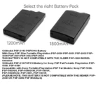 - Battery Capacity : 1800mAh (PSP-FAT) Battery.