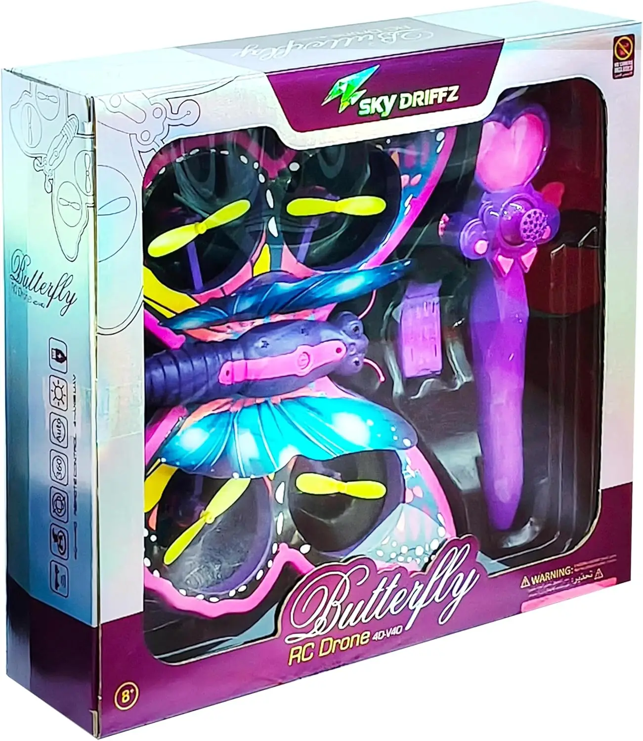 Sky Driffz Butterfly Remote Control Drone 4D-V40 2.4G Butterfly Aircraft with Side Flight, One-Key Takeoff/Landing, Headless Mode and Air Pressure Hold- Ages 8+ (698199)