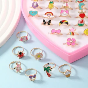 This adorable 36-Piece Adjustable Girls’ Ring Set is perfect for dress-up, pretend play, parties, and gifting!