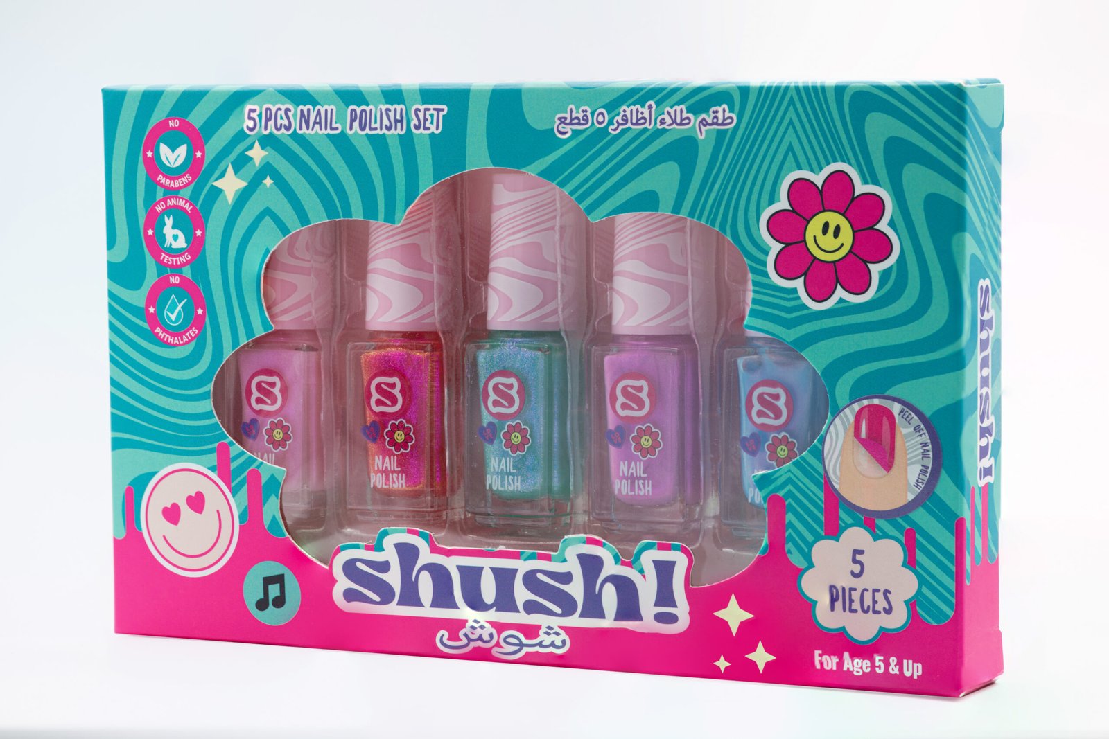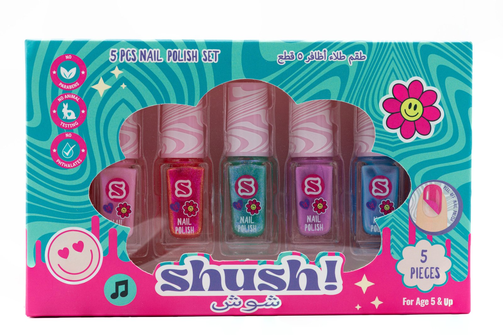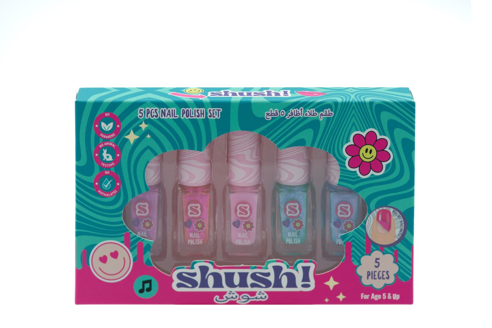 Shush! 5‑Pc Water‑Based Nail Polish Set – Non‑Toxic, No Parabens, No Phthalates – Age 5+