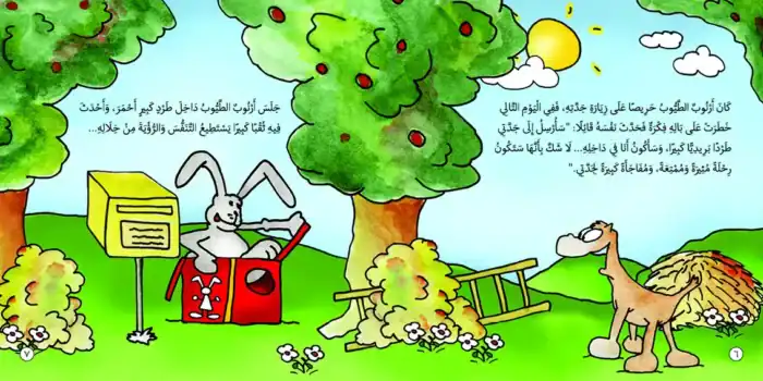 Arnoub is a rabbit who wants to visit his grandma, but can’t, because she lives a long way away. So, he works out a plan to get him to Grandma’s house. Inside a parcel, he has to fly in an aeroplane, sail on a ship, ride on a train and get bumped around in the postman’s van. Do you think his plan will work? Read the story and find out if he makes it safely to Grandma’s house.