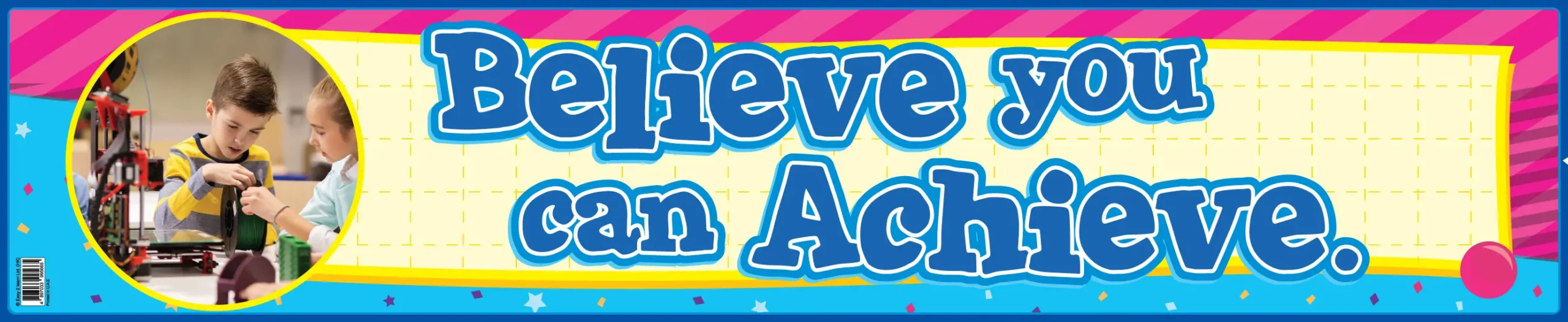 This motivational banner will inspire students of all ages. Display it in the classroom and around the school to create a positive atmosphere and build self-esteem.