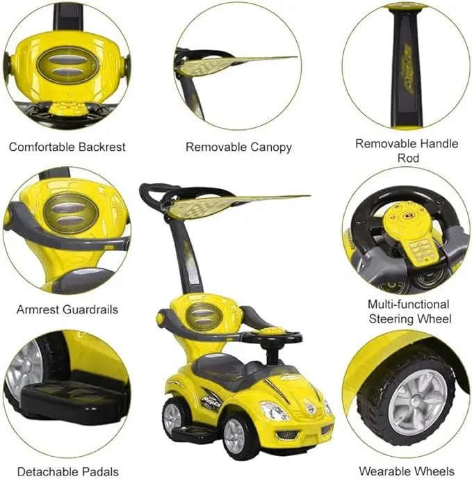 Megacar Canopy Kids 3-in-1 Push Car-Yellow