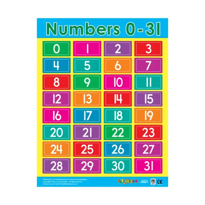 Be the first to review “Numbers 0-31 – Wall Chart in English” Cancel reply