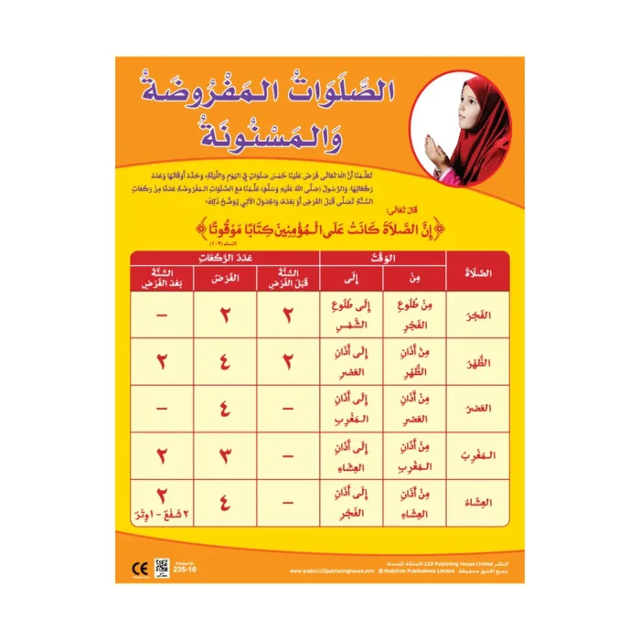 The Obligatory and Sunna Prayers - Wall Chart in Arabic