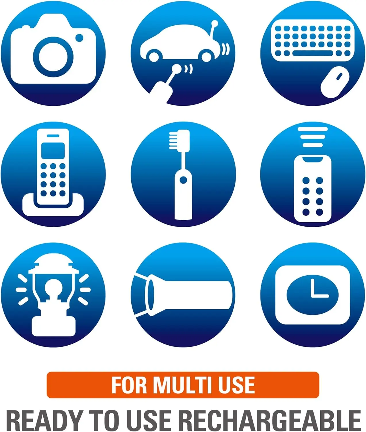 Rechargeable Ni-MH (AA) Battery, 2000 mAh capacity, pre-charged, can be recharged up to 2,100 times, retains ~70% of its charge after 5 years, and works even in Low temperatures (Down to –20 °C).