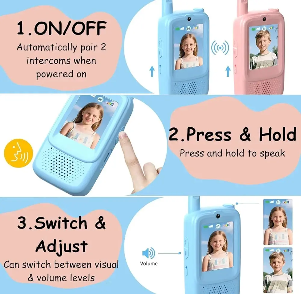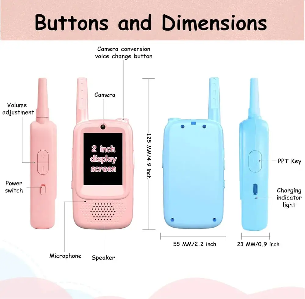 Video Walkie Talkies for Kids, 2 Pack Rechargeable Walkie Talkies with Screen Display and Voice Changer, Long Range Toys Gifts for 3-12 Year Old Boys and Girls