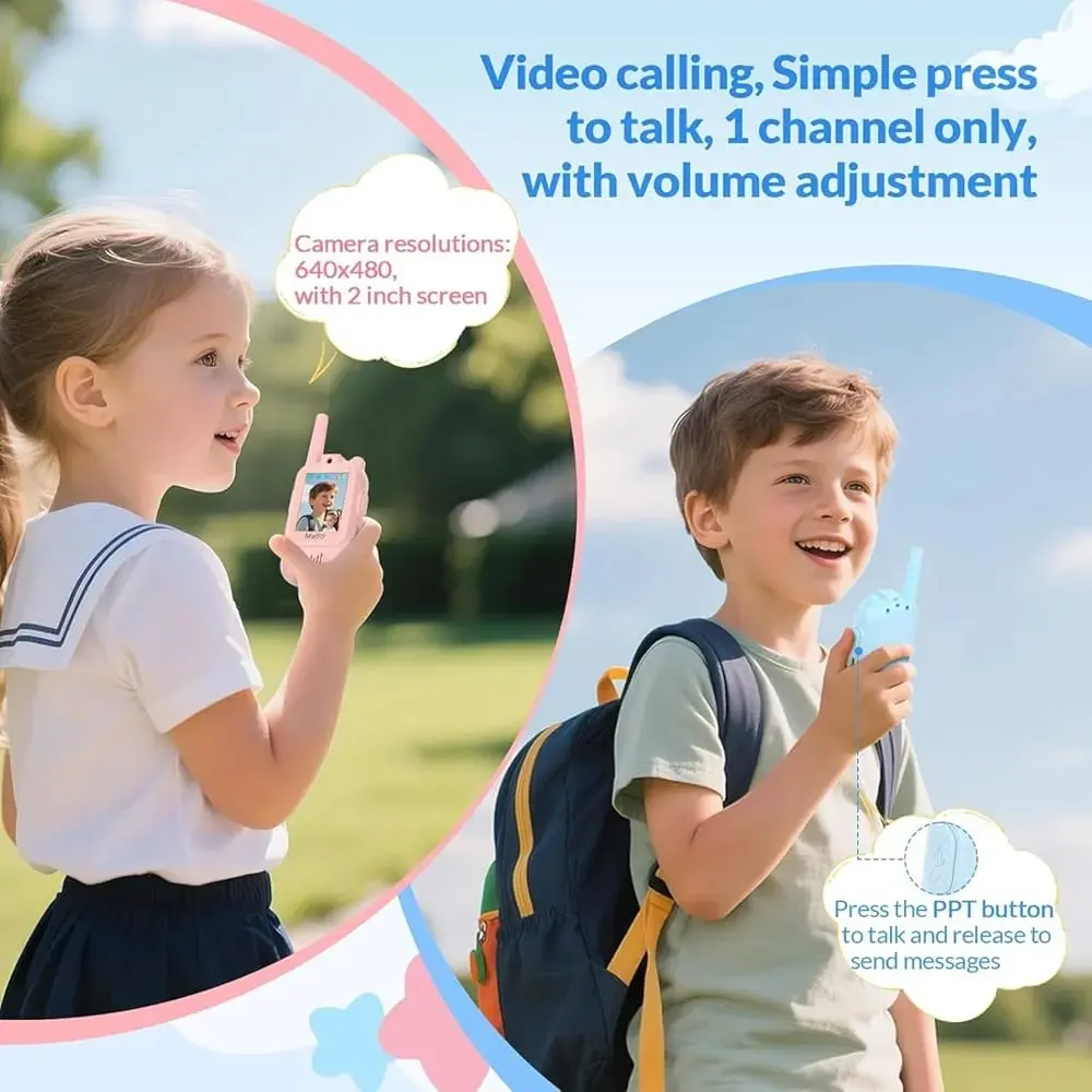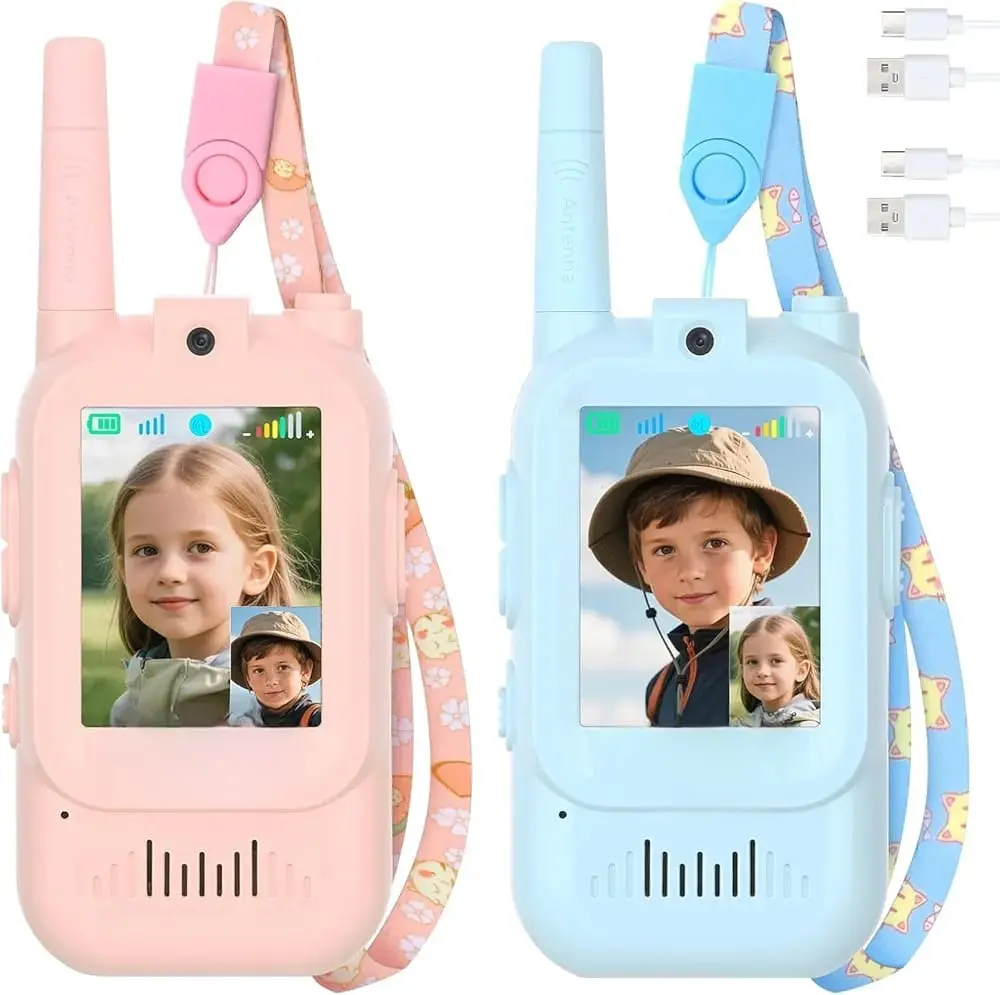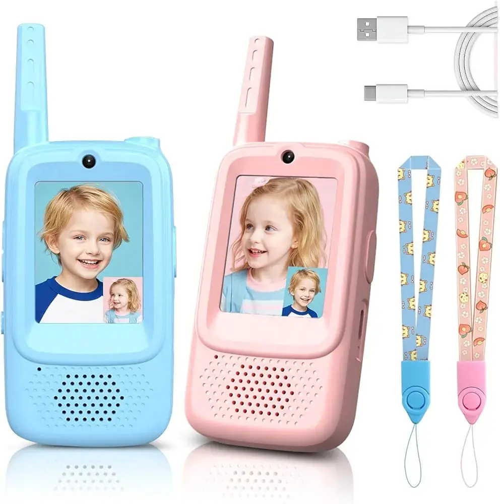 Introduce your children to the joy of communication with these delightful Video Walkie Talkies designed specifically for kids aged 3-12. This 2-pack set features vibrant pink and blue devices with colourful display screens that allow children to see each other while they talk, adding an exciting visual dimension to their conversations. The rechargeable walkie talkies come with voice changer functionality, providing hours of entertainment as kids experiment with different sounds. Each unit includes a comfortable lanyard with playful patterns, making them easy to carry during outdoor adventures. With long-range capabilities, these walkie talkies are perfect for backyard exploration, camping trips, or neighbourhood play. The child-friendly design features simple controls that little hands can easily manage, while the durable construction stands up to active play. USB charging cables are included, eliminating the need for constant battery replacements. Give your children the gift of interactive play that encourages communication skills and imaginative adventures.