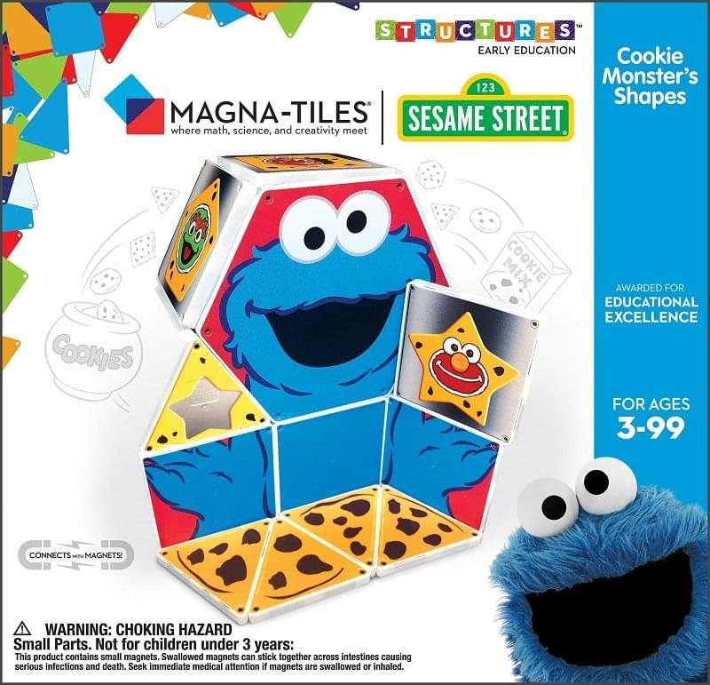 C is for Cookie! And F is for Fun! Our Cookie Monster’s Shapes set lets your child have fun playing with Elmo, Big Bird, Oscar, and the rest of the Sesame Street Crew while discovering shapes, geometry and more! Need a sweet treat after all that learning? Flip some tiles and create a giant cookie! Nom, Nom, Nom!