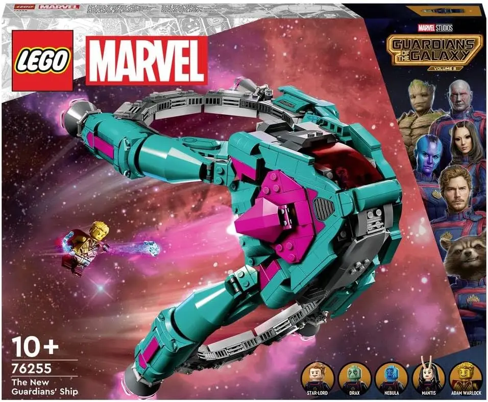 Immerse yourself in the world of the Marvel Guardians with this stellar build set. The LEGO Marvel 76255 The New Guardians’ Ship features 1 108 pieces, enabling builders aged 10 and up to construct an extraordinary spaceship complete with an opening cockpit for three minifigures, a secret compartment for another minifigure, weapons store, and two detachable small spaceships. The set includes five minifigures from the movie — Mantis, Drax, Star‑Lord, Nebula and Adam Warlock — offering both play and display value. The finished model measures over 31 cm high × 21 cm long × 26 cm wide, and the box weighs around 1.58 kg, making it a substantial collectible or gift for any Marvel fan.