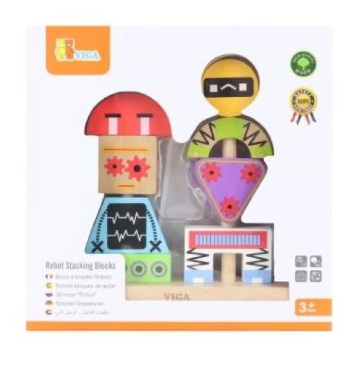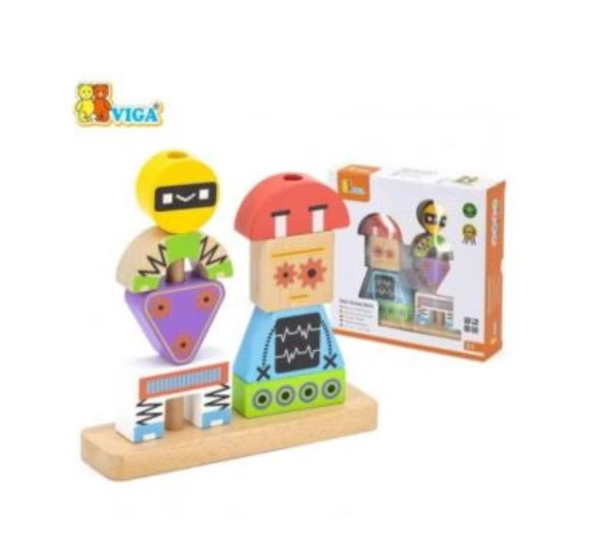- The Viga Robot Stacking Blocks is a fun and educational toy that fosters children’s recognition and naming of different colors and shapes.