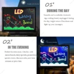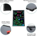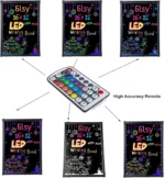 A Bright and Reusable (60 x 80 CM) Black LED Writing Board Perfect For Menus, Offers, and Creative Displays. The Black Surface Combined With Colorful LED Lights makes your Writing Glow Like Neon. Easy to Write, Erase, and change daily. Ideal for Cafes, Shops, Classrooms, Events, or Home Decor.