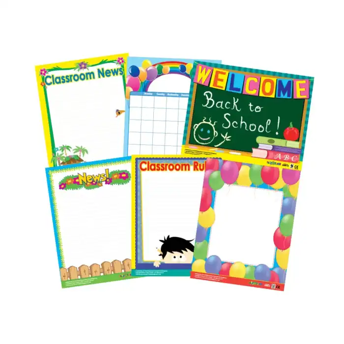 Attractive colours and designs make children feel at home and part of the class community. Hang on the wall and have children help update the charts daily; it also includes one write-on, wipe-off chart so all can become involved!