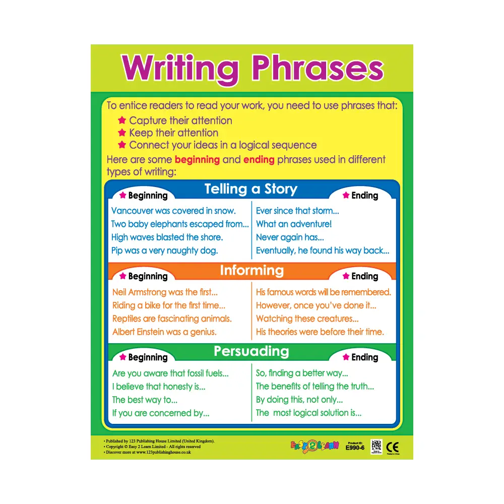 Writing Skills 1 (6 Wall Charts) – Educational Wall Chart Pack in English