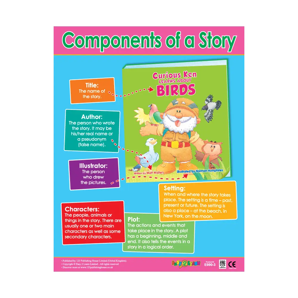 Help children use their basic skills to write a good story. This set of charts explains what children need to know about writing phrases, creating paragraphs and the components that make up a good story. Special charts included for writing topics.