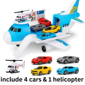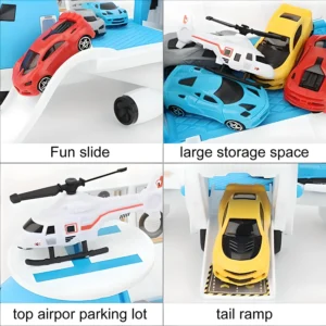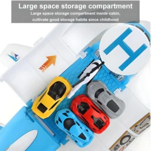 This multifunctional aircraft toy opens up to reveal a parking space for 4 colorful cars and a helicopter landing pad on top. Kids can load and unload vehicles using the built-in ramp, enhancing creativity and motor skills while having hours of fun.