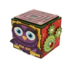 One side showcases a colourful owl with movable wings and tail, while others include a mini maze for developing coordination and spinning gears to introduce basic mechanical concepts. Whether at home or on the go, this portable toy is perfect for encouraging fine motor skills, logical thinking, patience, and hand-eye coordination.