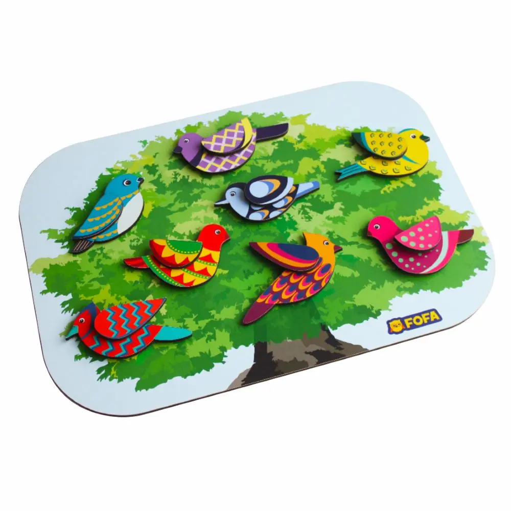 ntroduce your child to a world of creativity and fun with the Board with Velcro “Birds”! This bright, educational game features a colorful tree with velcro patches where kids can perch vibrant birds and match their wings by color. It encourages imaginative play by allowing children to mix and match wings to create unique feathered friends.