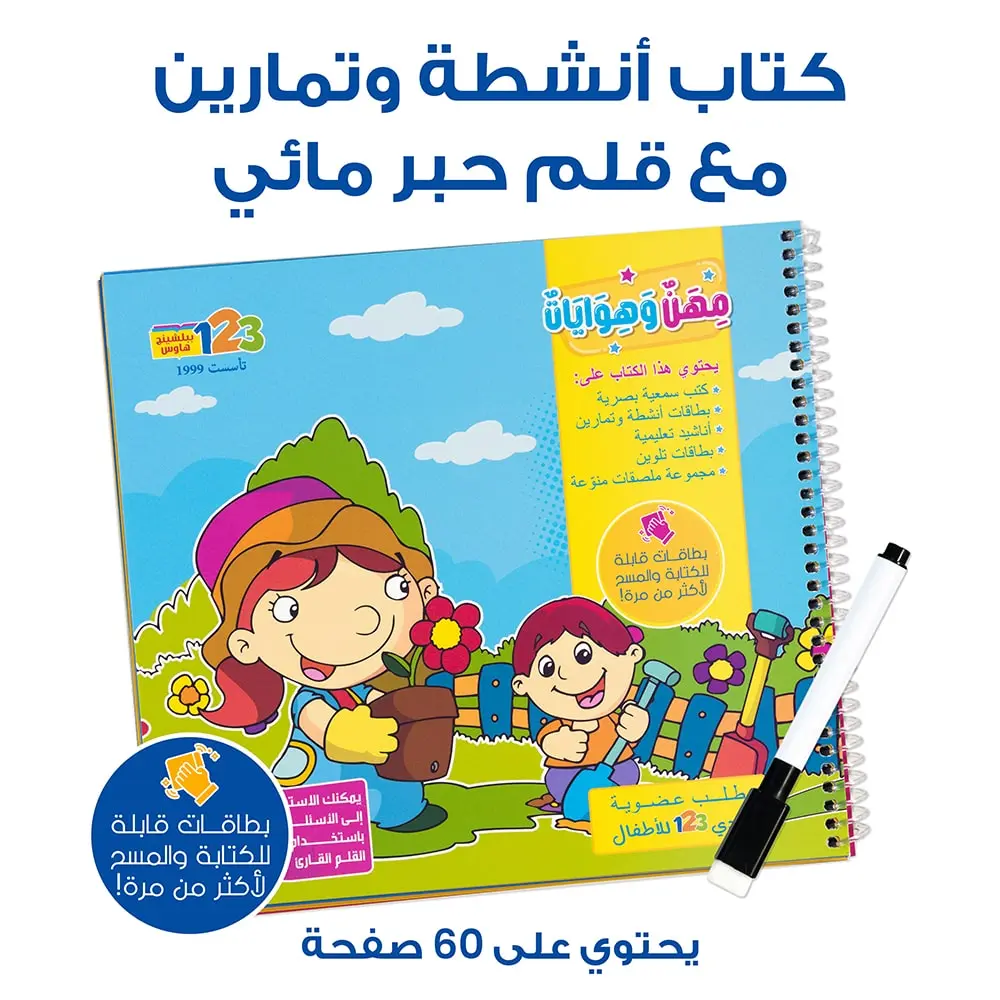 Activity booklet including (perforated write-on, wipe-off cards):