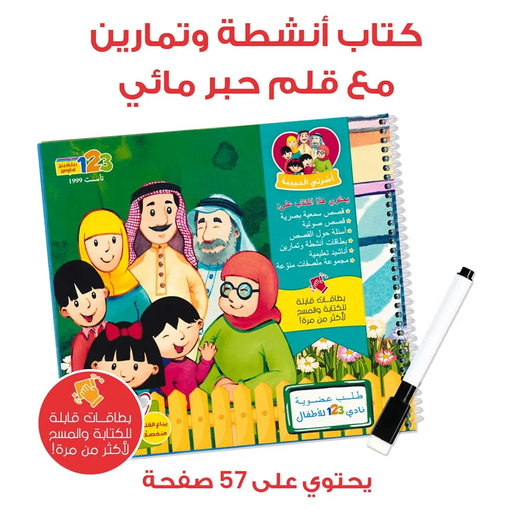 كتاب أنشطة وتمارين (صفحاته مخرّمة وقابلة للنزع وللكتابة والمسح لأكثر من مرة) يحتوي على: