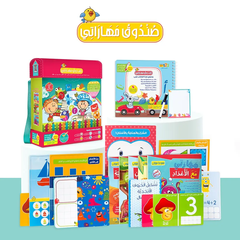 100 game cards: Shapes & colours cards / Boats’ sorting game / Small or big / Playing dough cards / sand tracing Arabic Alphabet cards / subtraction and teeth game / Adding aliens’ eyes / X O game / Cubes game.