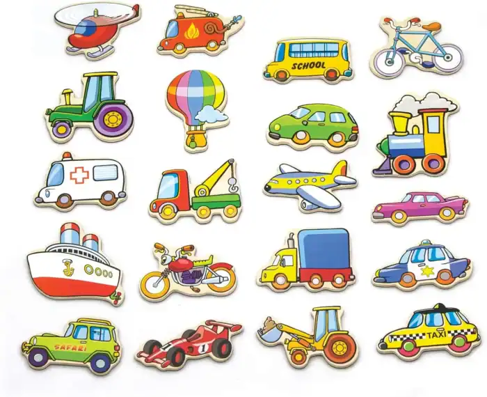 - Colorful magnetic vehicles for sticking to the fridge or any magnetic surface. Nice color box for easy storage.