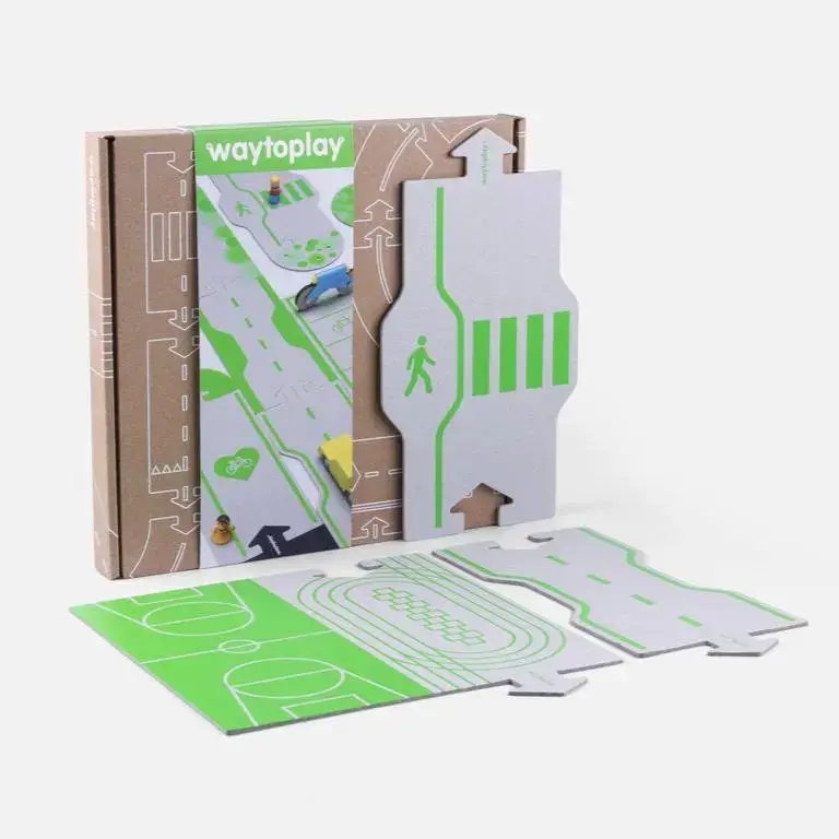 Made from recycled cardboard and designed for indoor use, Downtown is fully compatible with our flexible toy roads. Imagine, create, play!