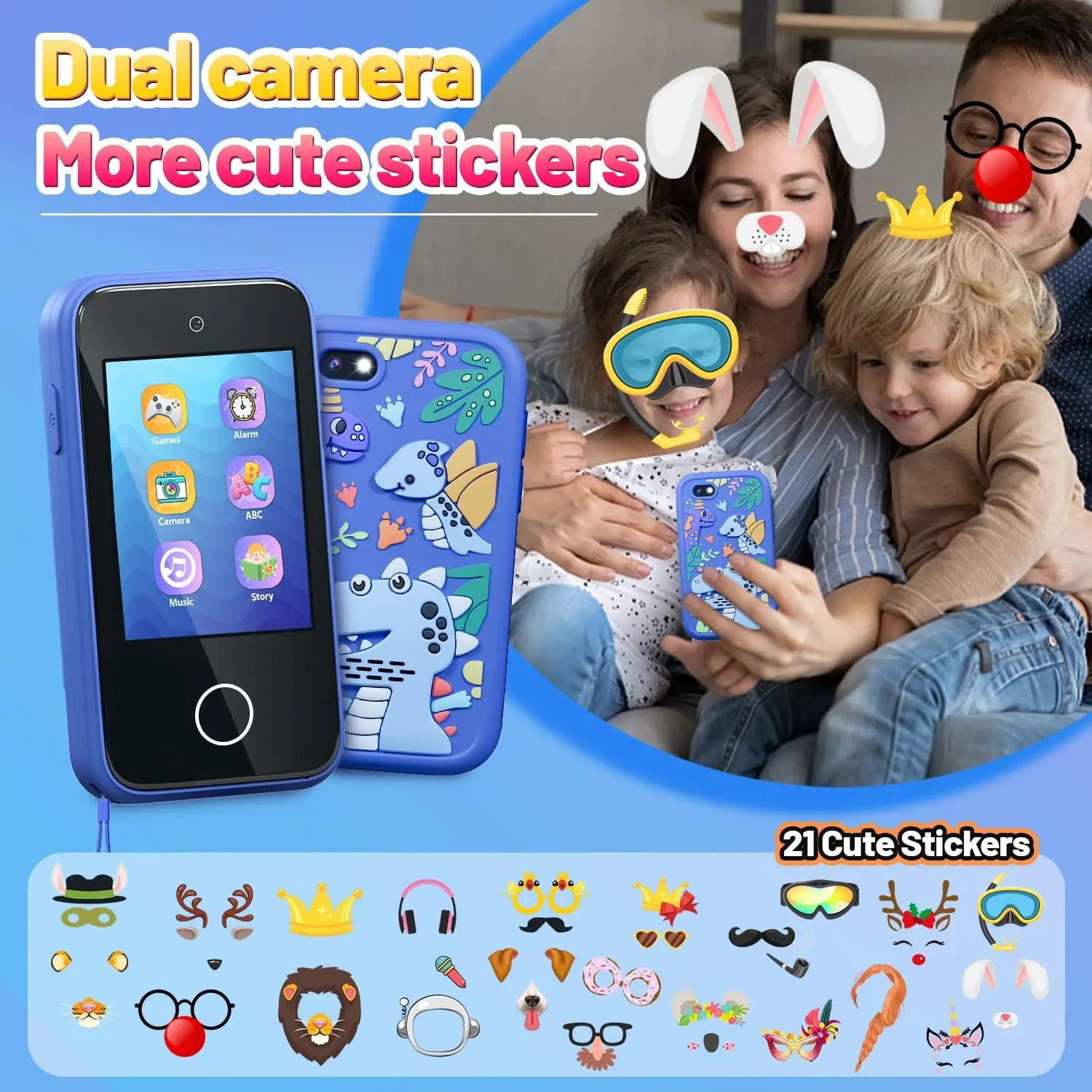 - 【Great Gift for Kids】This blue dinosaur-shaped smartphone is the perfect birthday, holiday or holiday gift for boys and girls ages 3 to 9. Kids will love to capture scenes and animals in nature with their very cute phones. As a bonus, parents can finally have peace of mind that their children have their own fake phones and no longer need to use their smartphones.