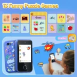 - 【Upgraded Smart Phone for Kids】Introducing our upgraded smart cell phone for kids,Boasting 2.8″ IPS touchscreen,together with multiple functions such as camera,photos,video,music, calculator,calendar, torch, stopwatch, ABC learning,games and more,the gift for 5 years old girls can be also used as MP3s,cameras,music players,game players,alarm clocks,and calendars. Your kids deserve this kids toy for both playing and learning.