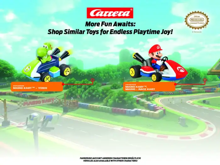 Carrera R/C MARIO KART PIPE KART YOSHI is a quality Carrera toy. What’s inside: 4.0 pack. This product offers realistic design and durable materials ideal for imaginative play and collecting. Suitable for ages 6+.