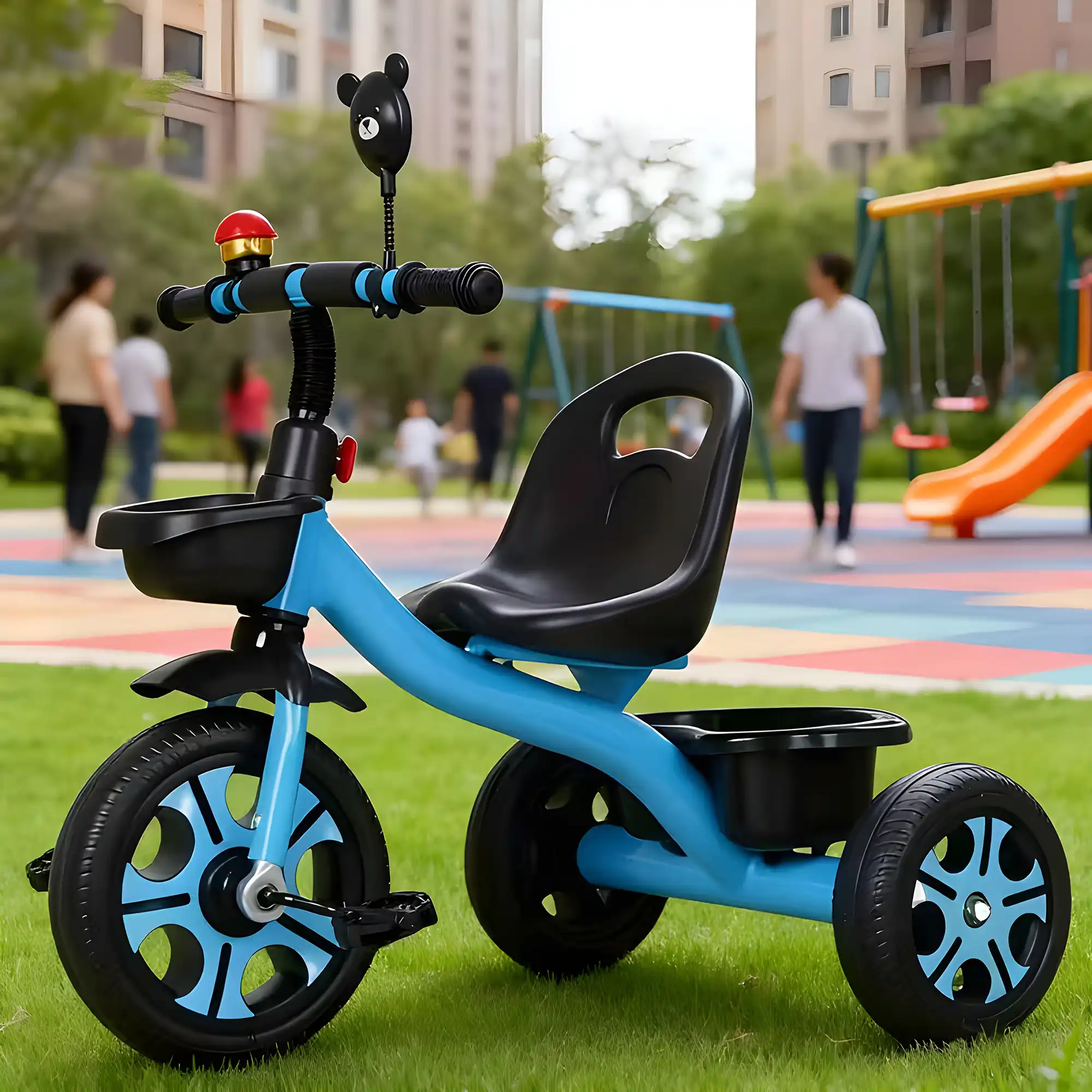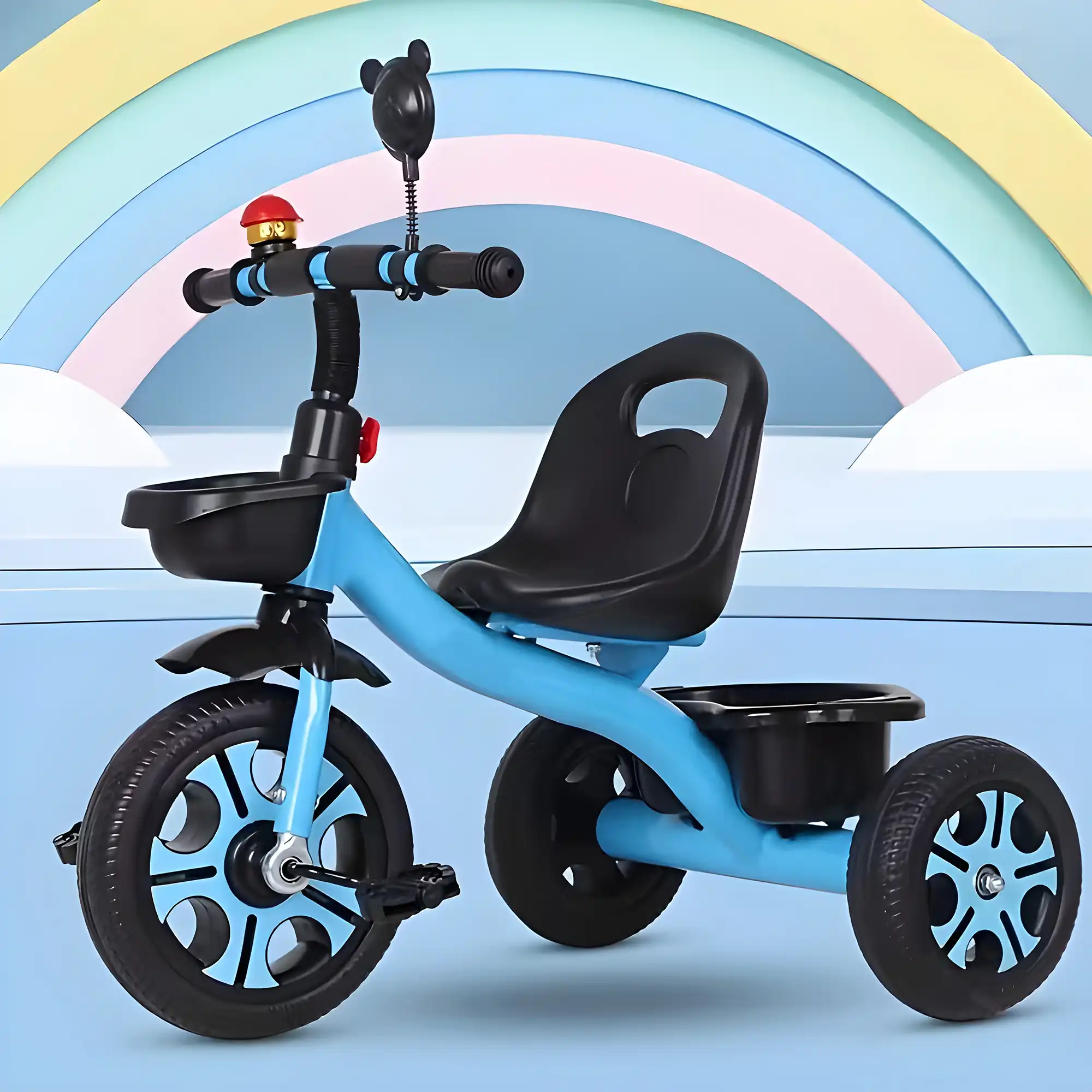 This Kids 3-Wheel Tricycle with Push Handle is designed to provide both fun and safety for toddlers aged 3 to 8 years. The adjustable seat and backrest make it ideal for growing children, ensuring comfort and proper posture throughout every stage. Parents can easily control the tricycle with the detachable push handle, offering guided riding until the child is ready to pedal independently. Built with durable EVA wheels, the tricycle ensures smooth, quiet rides on all surfaces, both indoors and outdoors. Its stable 3-wheel structure, safety harness, and non-slip pedals add extra protection during playtime. The spacious rear storage tray allows children to bring along their favorite toys or snacks, making outdoor adventures even more exciting. Combining safety, comfort, and entertainment, this tricycle is the perfect early ride for developing balance, coordination, and confidence.