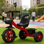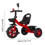 This Kids 3-Wheel Tricycle with Push Handle is designed to provide both fun and safety for toddlers aged 3 to 8 years. The adjustable seat and backrest make it ideal for growing children, ensuring comfort and proper posture throughout every stage. Parents can easily control the tricycle with the detachable push handle, offering guided riding until the child is ready to pedal independently. Built with durable EVA wheels, the tricycle ensures smooth, quiet rides on all surfaces, both indoors and outdoors. Its stable 3-wheel structure, safety harness, and non-slip pedals add extra protection during playtime. The spacious rear storage tray allows children to bring along their favorite toys or snacks, making outdoor adventures even more exciting. Combining safety, comfort, and entertainment, this tricycle is the perfect early ride for developing balance, coordination, and confidence.