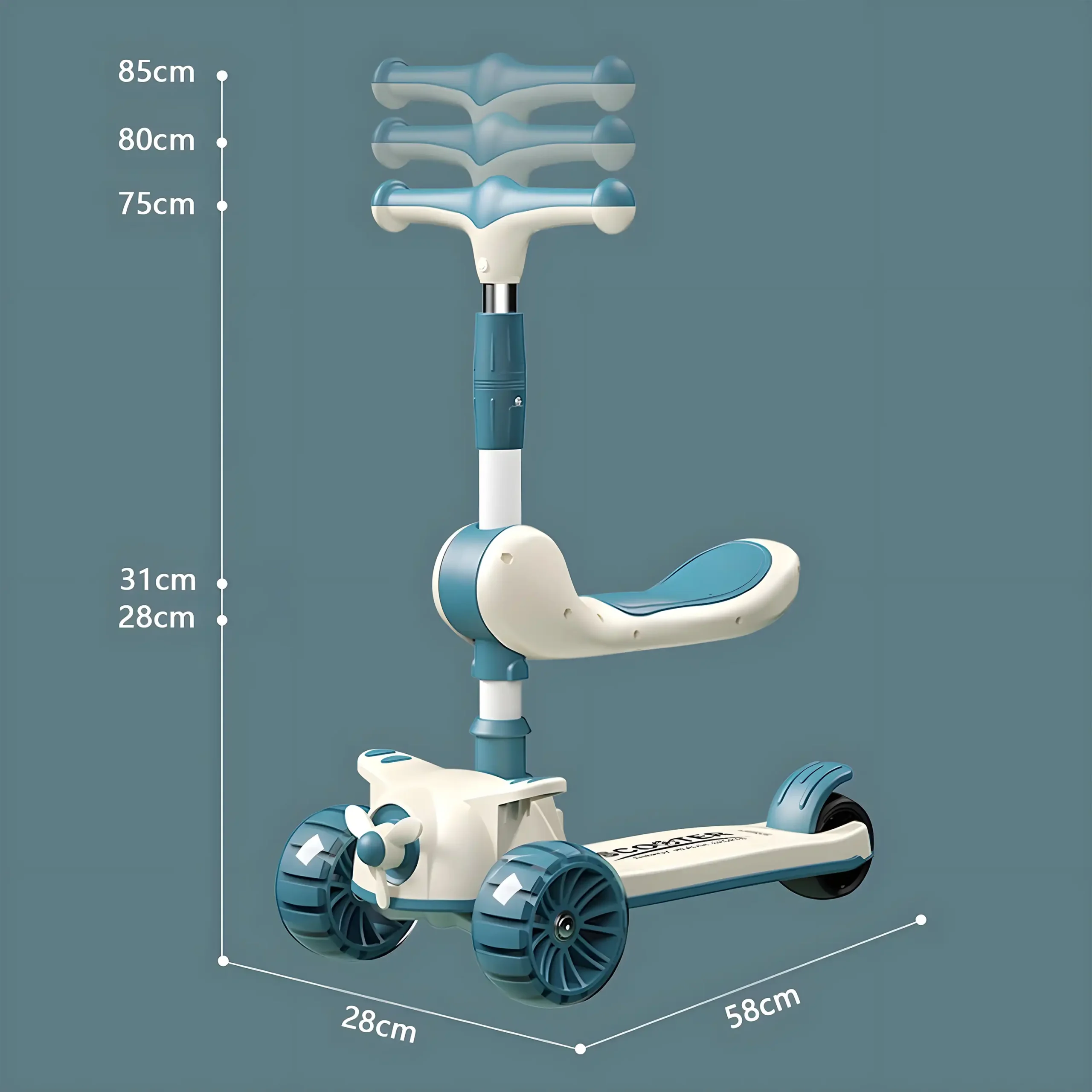 Our scooter is equipped with a 4-height adjustable handle, accommodating your growing child and ensuring years of use. Whether they’re mastering new tricks or simply enjoying a leisurely ride, this scooter adapts to their height with ease. The scooter’s versatility doesn’t end there; with options like a scooter with a seat for kids, it transforms from a stand and cruise scooter to a comfy ride for those longer adventures.