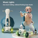 Watch as your child glides smoothly and safely with our scooter’s wide, anti-slip deck that ensures a secure footing, even during the most energetic rides. The scooter’s flashing wheel lights aren’t just a visual treat; they also provide an extra layer of visibility, keeping your child safe as they cruise around the neighborhood. With a folding scooter design, storage and transportation are a breeze, allowing your child to take their new favorite ride anywhere.