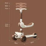 Our scooter is equipped with a 4-height adjustable handle, accommodating your growing child and ensuring years of use. Whether they’re mastering new tricks or simply enjoying a leisurely ride, this scooter adapts to their height with ease. The scooter’s versatility doesn’t end there; with options like a scooter with a seat for kids, it transforms from a stand and cruise scooter to a comfy ride for those longer adventures.