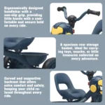 🌟 Safe & Sturdy Design: Built with a durable steel frame and 3 non-slip wheels, this tricycle ensures stability and balance, making it ideal for beginners. The low center of gravity prevents tipping, giving parents peace of mind.